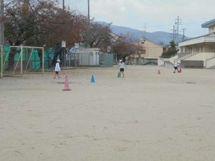 中間マラソンが始まっていますが,体育でもペース走が始まりました。今日は今年はじめての学習なので,準備のしかたをしっかり確認しました。「コーンの場所はここでいいかな?」「こっちにも持ってきて!」と声をかけながら協力して準備をしてくれていました。