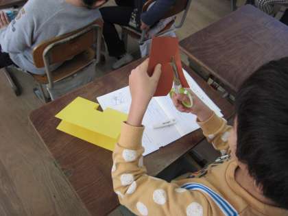 「しかけカードの作り方」を読みながら,カードを作りました。出来上がったカードには,家族に向けてメッセージを書きました。
