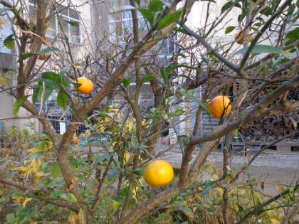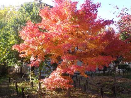 ネイチャーランドの秋は深まりを見せています。イロハカエデは紅葉し,太陽の光で一層美しく輝いて見えます。ミカンの実もオレンジ色になり,本当は食べ頃でしょうか?