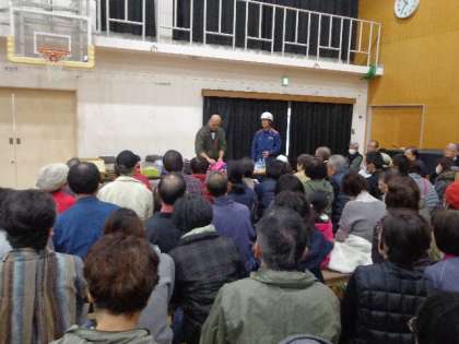 11月20日(日)午前9時40分より,常磐野学区の自主防災訓練が行われました。300名を超える方の参加がありました。避難を想定しての話や防災用袋にどんなものを入れておけば良いかといった具体的なお話もありました。事前に備えておくことの大切さや避難しなければならないことが起こった時に互いに協力し合うことの大切さを改めて感じておられるようでした。