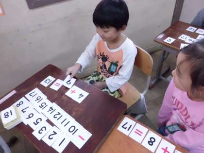 楽しく問題をつくる,答えるを繰り返して,友だちと遊びを通して加減の計算の理解を図っています。