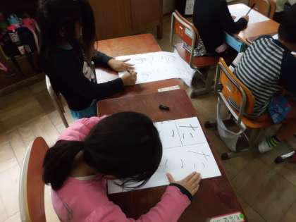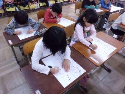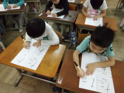 姿勢を正し,落ち着いて,ていねいに書く様子が見られました。