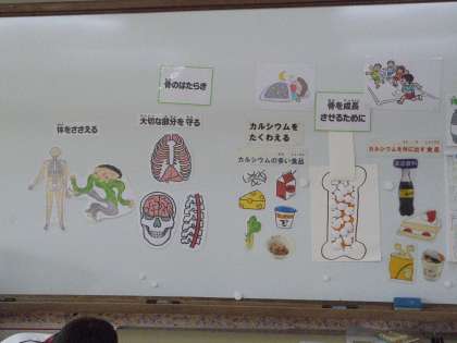 カルシウムを多く含む食品を食べたり,適度な運動や睡眠が骨を成長を促します。また,小学生の時期が骨の密度を決める大切な時期だそうです。食事など,意識していけるといいですね。