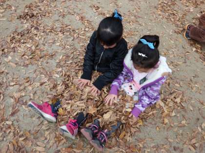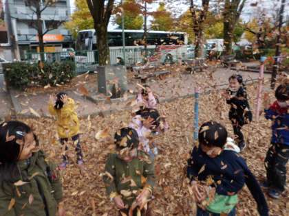 落ち葉がたくさんあって,大興奮の子どもたちでした。