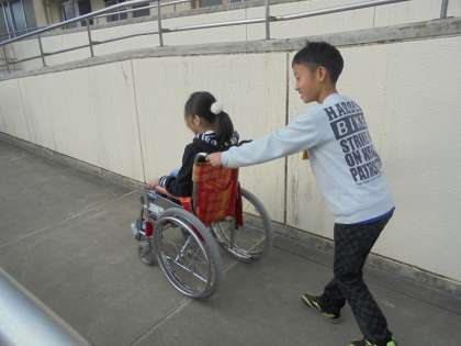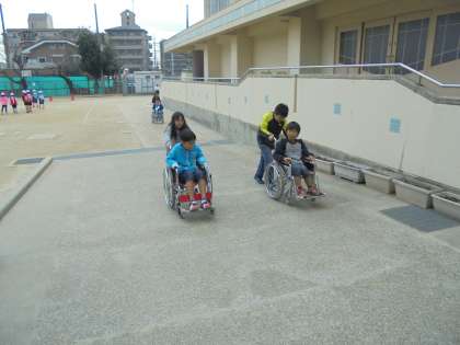 ときわのユニバーサルデザインの学習の一環で,車いす体験をしました。