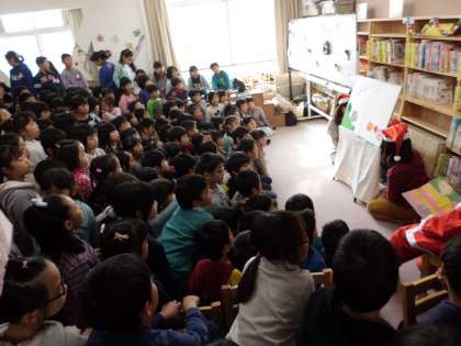 「図書ボランティアさんによるパネルシアター」が中間休みに行われました。校舎内に貼られたポスターを目にした日から楽しみにしていた子どもも多く,中間休みになるとすぐに図書室に向かう様子がたくさん見られました。「とんでけかぼちゃ」というお話で,楽しく聞くことができていました。