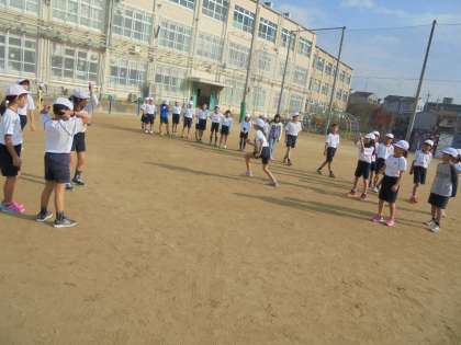 体育ではペース走と合わせて,なわとびもしています。普段は短なわを中心にしていますが,今日は大なわの8の字とびにも挑戦!続けて入れるようにと目標をもったり,苦手な人にも入るタイミングをアドバイスしたり,楽しそうに,一生懸命取り組んでいました。