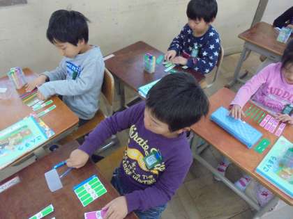 すうじを書いたり数え棒をならべたりするときは,10のたばとばらの数を考えるという学習をがんばっています。