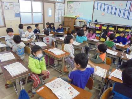 「おちゃらかほい」「おおなみこなみ」など昔ながらの歌を体を動かしながら歌いました。特に「おちゃらかほい」は子どもたちに人気で,休み時間にも遊んでいる声が教室から聞こえてきます。