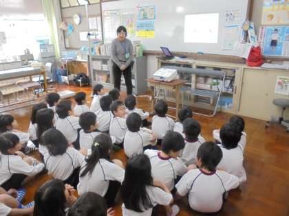 おしゃべりをしているときで1m,咳やくしゃみをしたら3.5mの距離を菌が飛んでいくという話を聞いて子どもたちはとても驚いていました。