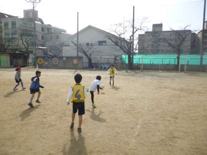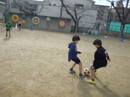 体育はサッカーが始まりました。パス練習やドリブル練習をしてから試合をしました。これから少しずつ慣れていき、できることを増やしていってほしいと思います。