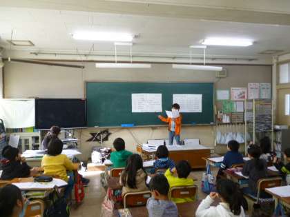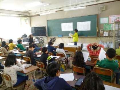 資料から分かることを発表原稿にまとめ、みんなの前で発表しました。上手にまとめている子が多く分かりやすい発表ができました。
