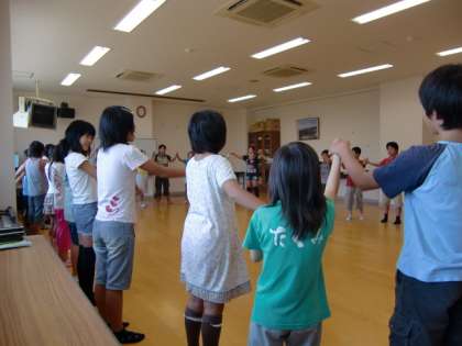 20日の夜に行うキャンプファイヤーのクラスの出し物の練習をしました。