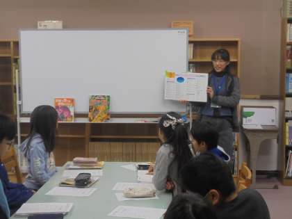 理科の季節と生き物では,生き物の1年間の様子の変化をまとめています。これまで観察してきたカードも資料として使いますが,この日は図書室での調べ学習。司書の小野寺先生にも協力していただき,図鑑の使い方や本の分類について確認してから調べ学習に入りました。