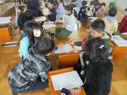 それぞれの音色を生かし,鳴らし方を工夫しながら,班で話し合いながら進めました。