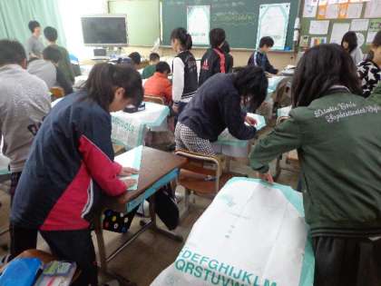 家庭科でエプロン作りをしています。今日は,型紙にまち針を打つ作業をしました。どんなエプロンができるのか楽しみです。