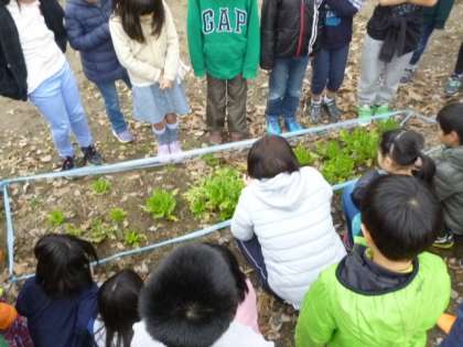 ネイチャーランドの畑で育てている大根の様子を見に行きました。この大根を使って大根料理にチャレンジします!おいしい大根料理が作れるようにがんばります。