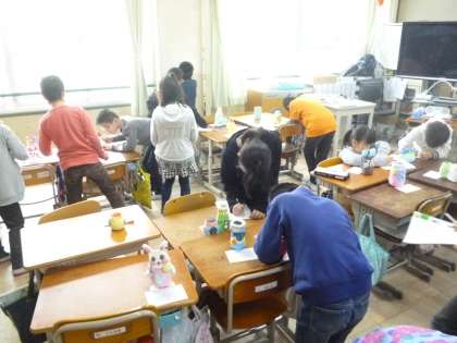 図工で作った作品や版画作品の鑑賞会をしました。自分以外の作品を鑑賞して感想を書きました。みんな力作ばかりです。