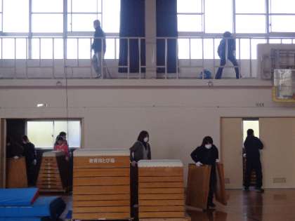 運動場や中庭は溝をあげて土や砂をとる大変な作業をしていただき,体育館や各部屋は隅々まできれいに掃除をしていただきました。