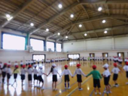 さて,何人で集まるのでしょう。あえて先生たちは,子どもたちがどうするのか見守っていました。すると,学年全員が手をつないで円になろうと動き始めました。どうやったら,学年全員で手をつなげるかな?いろいろ考えて,動いて,みんなで声を掛け合って,みんななかよしの輪ができあがり!この後,「ふえおに」もして,みんなで楽しみました。一年間がんばっていきましょう。