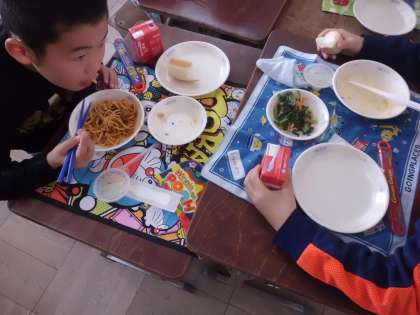 中間休みに給食室の近くを通ると早くもとーってもいいにおい!ついに給食が始まりました!
