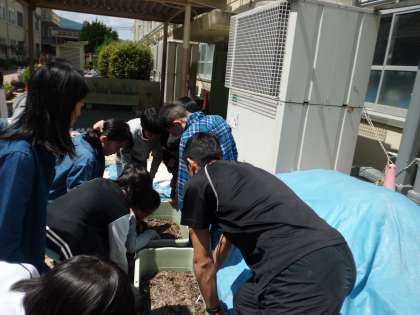 ジャガイモの芽がでてきました。理科の実験で使うときには,もっと成長していてほしいです。がんばれジャガイモ!!
