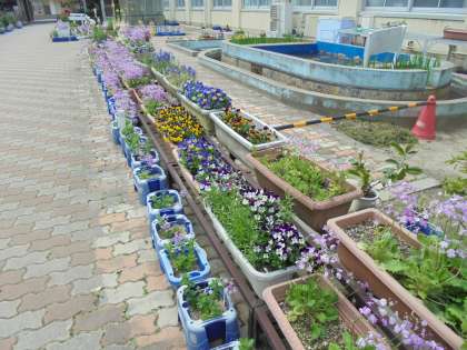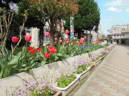 今は,チューリップやサクラソウが花を咲かせています。