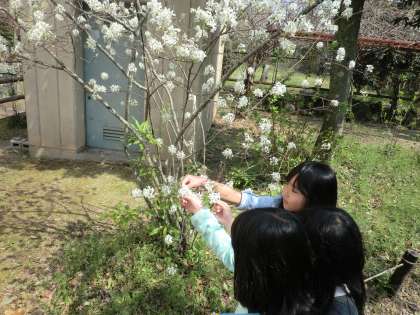 太陽の光もまぶしくて,桜をはじめ,いろいろな花が咲いていて子どもたちも自然を笑顔がこぼれていました。
