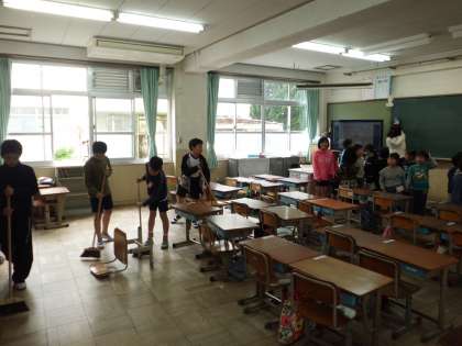 1年教室の掃除