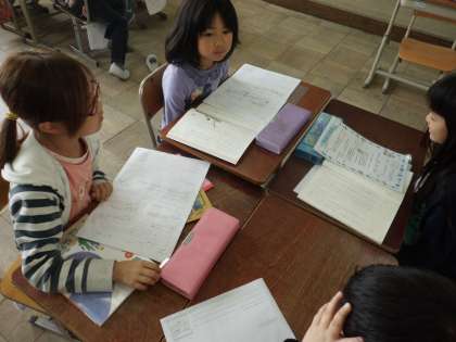 国語の「きつつきの商売」で,1場面と2場面の違いを読み取り,班で話し合いました。3年生になって初めての班での話し合い。進め方のヒントカードを使って話し合いを進めました。慣れないことで戸惑っている様子もありましたが,一生懸命な姿が素敵でした。何度もやっていくうちにだんだんと上手にできるようになると思いますよ!