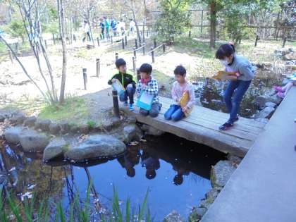 理科の学習では、春の生き物を探しにネイチャーランドの行きました。良い天気で暖かいなか、生き物の観察ができました。生き物を見つけた時の嬉しそうな子どもたちの表情が印象的でした。桜がきれいに咲いていて、メダカやアメンボ、モンシロチョウなどがいました。
