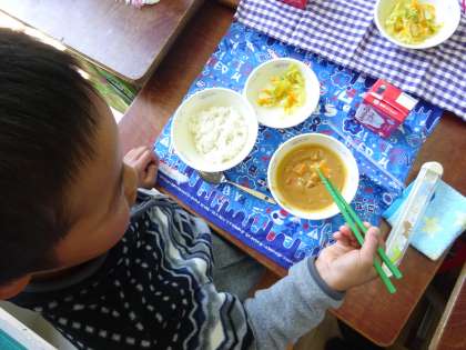 今日,当たった人はだれかな?チキンカレーにもみんな大喜びでした。これからもみんなで楽しく食べていきましょうね。