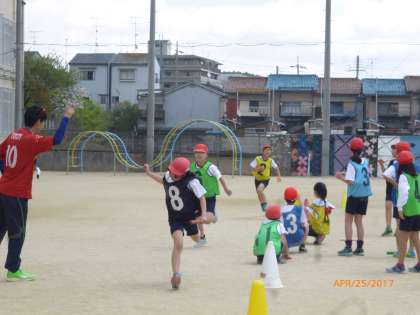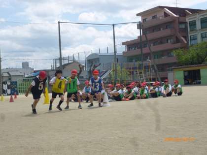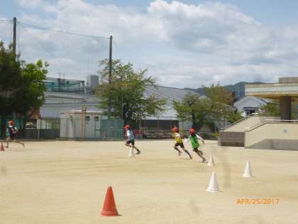 今日は良いお天気の中。運動場で体育をしました。リレーの練習では、バトンをうまくパスできるように各グループで練習をしました。その後、練習の成果を確かめるため、グループ対抗リレーをしました。次々とバトンがつながれていき、どのチームも力いっぱい走ることができました。