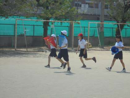 今回は,体育の「リレー」の後の片付けです。