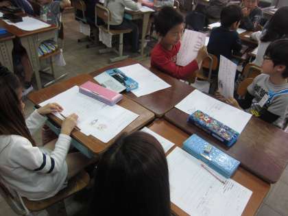 先週の金曜日に,動物たちが開いたら楽しいと思うお店の看板を作りました。今日はその看板の交流会。とても楽しいお店の紹介がたくさんありました。子どもたちの発想は,本当に素敵です。