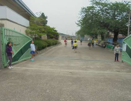 朝に,門の前に立って,本部の子どもたちが「おはようございます!」と元気いっぱいにあいさつをしています。