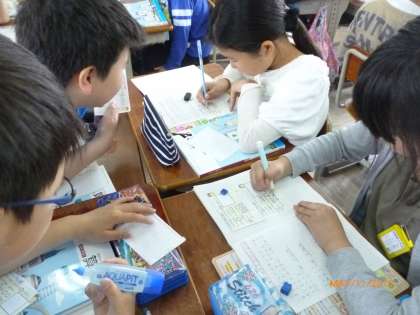 整数×整数の計算をもとに、「小数のかけ算はどのように計算したらよいだろうか」をカードを使って話し合い活動をしました。なんとなく分かるけど、説明するのは難しいですね。