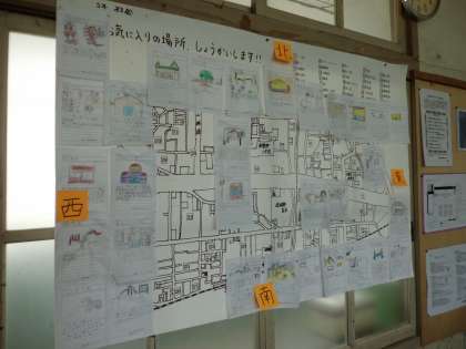 今日はまちたんけんに向けて,校区の丸太町通の様子について予想を立てました。お気に入りの場所を紹介し合ったときの地図を見ながら立てた予想を,班で話し合ってみんなで共有しました。