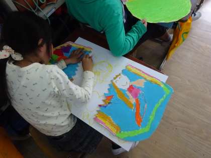 図工では,自分だけのひみつのたまごをかいています。前回の授業では,クレパスを使って,世界に一つだけの自分のたまごをかきました。たまごの中には,何が入っているのかな?イメージをどんどん膨らませて,かいています。楽しい作品ができてきました。