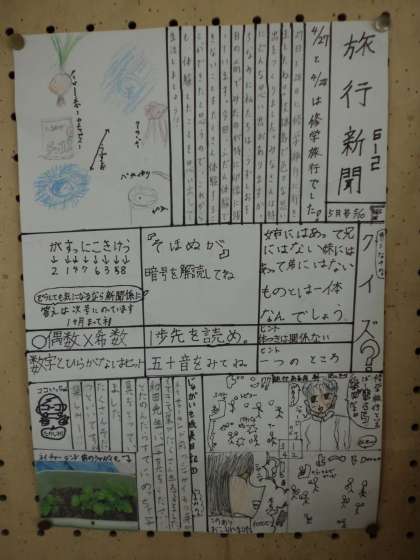 クラスの新聞係がみんな大好きのじゃがいもの成長の事や,修学旅行での玉ねぎ掘り,渦潮を見た感想を新聞にしました。