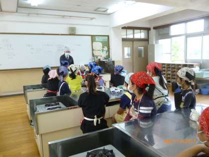 5年生から始まった家庭科の学習はみんな大好きです。今日は、初めて家庭科室で勉強します。ちょっと緊張気味かな?