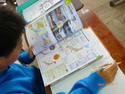 社会科では日本の気候について調べています。これから「つゆ」が始まりますね。つゆや台風・季節風について調べました。