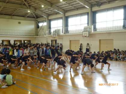 軽快な音楽に合わせて、みんな元気よく踊ることができました。体育館に響き渡る大きな掛け声も気持ち良かったですね。1年生も楽しんでくれたことでしょう。