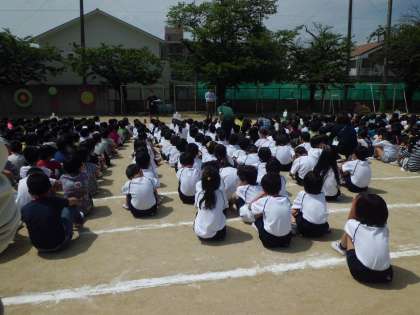今日は小学校に入って初めて,避難訓練がありました。事前に教室で「お・は・し・も・て」を確認して,訓練に臨みました。