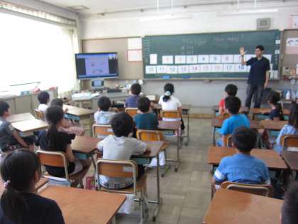 1〜20までの数の発音を教えてもらったり,How many balls?のChantをしたりして英語に親しみました。