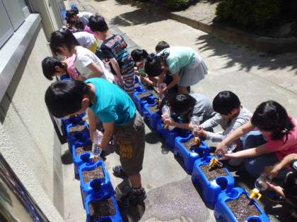 1年生 あさがおの種を植えたよ