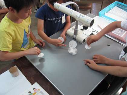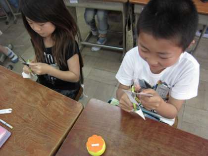 工作用紙を使ってコマを作りました。コマには3つ点をかきました。