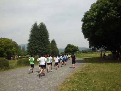 嵐山東公園は支部の予選会場でもあり,また他校の陸上部と一緒に練習するということでさらにやる気が出たのではないでしょうか。