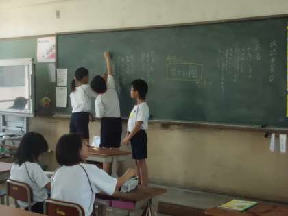 6年生が中心になって話し合いました。4月の委員会活動の反省をしたり,6月の目標を決めたりしました。