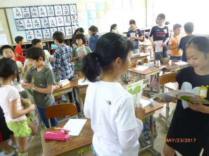 今日の英語は、友達とペアになって、好きな物をたずねたり答えたり、いくつあるのか数をたずねたりする会話を練習しました。
